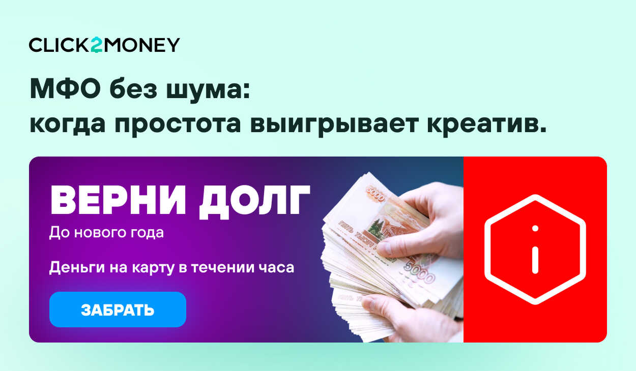 В нише микрозаймов все запросы однотипны и утилитарны. Пользователю нужны деньги здесь и сейчас, поэтому и рекламные объявления строятся вокруг одних и тех же простых тезисов. Если потенциальному заемщику показать абстрактный или слишком креативный баннер, он просто не поймет, что ему предлагают, и пройдет мимо. Яркий дизайн и необычный сюжет могут отвлечь от сути оффера. В итоге броский креатив не добавляет конверсии, а скорее мешает донести сообщение до целевой аудитории.