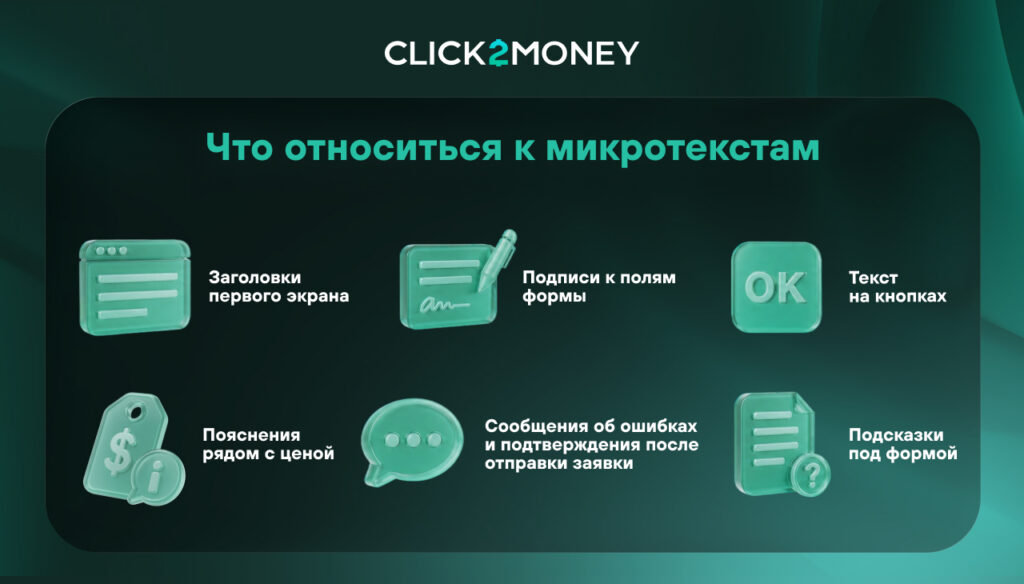 Микротекст — это короткий текст на странице, который помогает человеку понять интерфейс и принять решение.